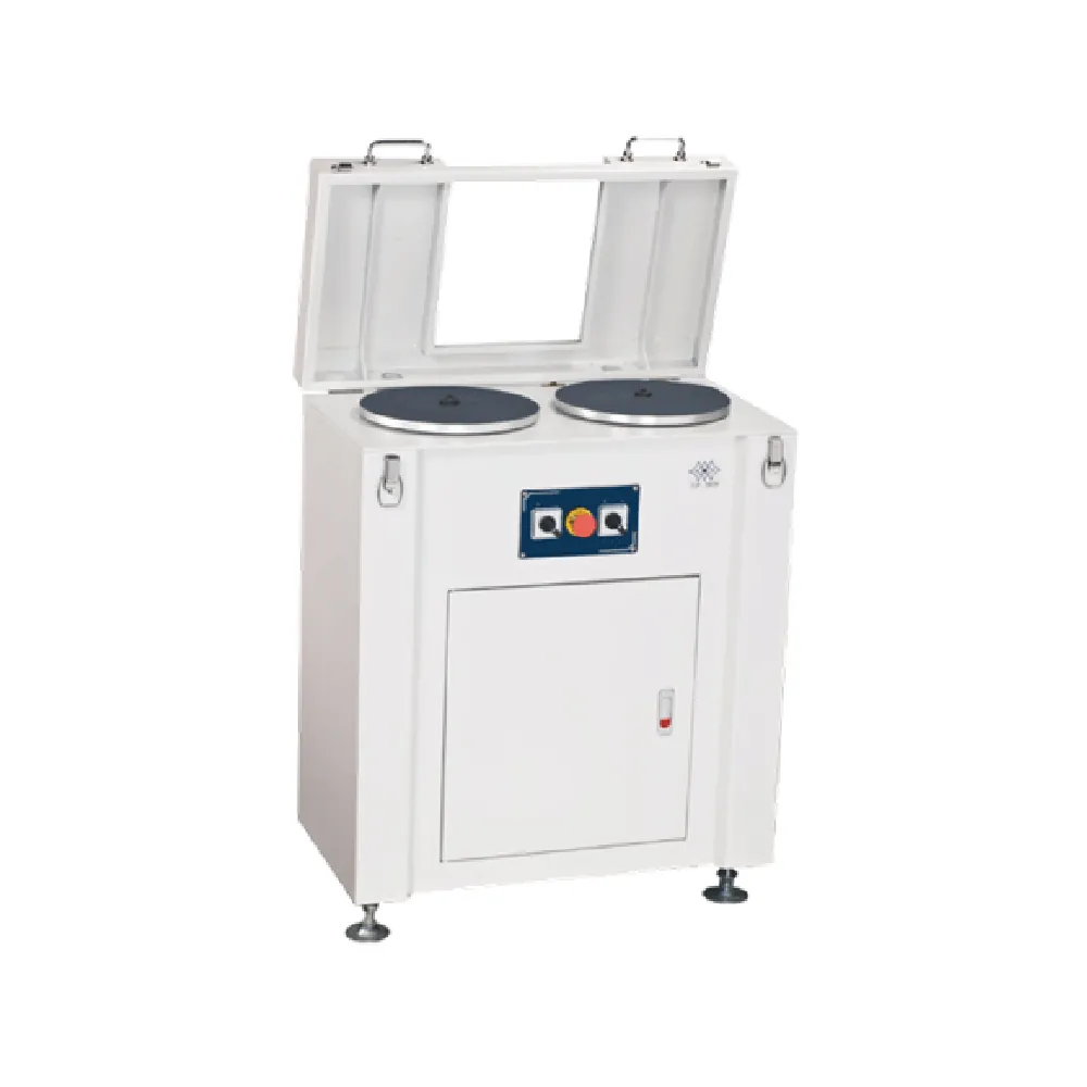 A floor-standing dual-disc grinder with independent control, designed for metallographic sample preparation requiring high precision and flexibility. It is suitable for both laboratories and production lines, enhancing efficiency by allowing simultaneous grinding of various materials.