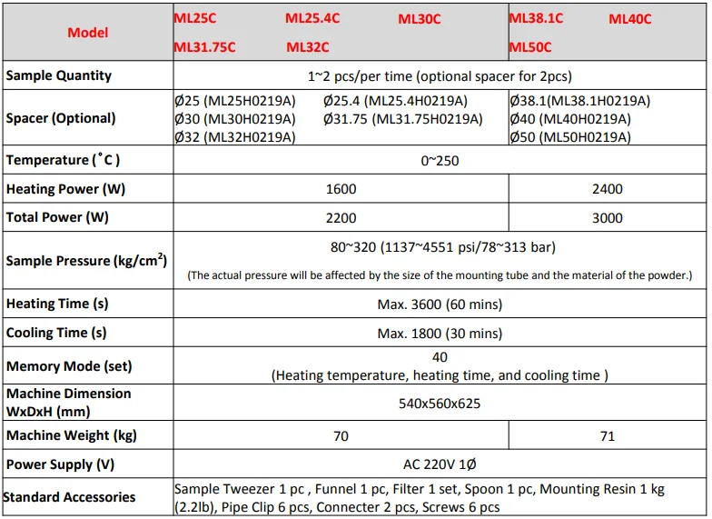 Hot Mounting Resin Machine ML SERIES C from TOP TECH
