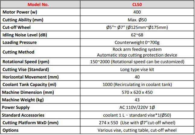 The CL50 is a high-precision benchtop diamond cutting machine, ideal for metallographic sample preparation. It supports workpieces up to Ø50 mm and comes equipped with a high-quality diamond blade, capable of accurately cutting a wide range of materials including ceramics, plastics, aluminum, copper, steel, printed circuit boards (PCB), and carbon fiber. Designed for use in laboratories and industrial settings, it features a gravity-feed cutting system that minimizes surface deformation.